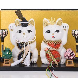 和洋折衷な見た目がキュート。愛らしい表情に心が和む「お雛様ご縁招き猫」は、ユニークでオリジナリティあふれるデザインとなっております。